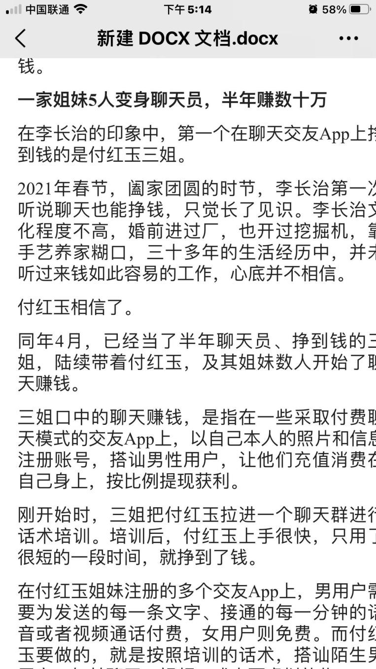 大河报报道一李姓男子,因离婚曝光前妻伙同姐妹五人在轻甜、寻觅陌聊等交友APP上聊天赚钱,每天数百上千元的收入,令这五姐妹半年时光,狂赚数十万元,聊天,这么赚钱吗?