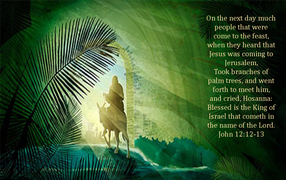 在那时候耶路撒冷充满了前来过节的群众,这其间有不少人曾经看过主耶稣医病、赶鬼、行神迹,并听祂所讲的道。主耶稣的名声早已传遍各地,他们看见主耶稣骑驴进耶路撒冷就欢迎祂,这是主复活前的一个礼拜,“这事成就,是要应验先知的话,说‘要对锡安的居民说:看哪!你的王来到你这里,是温柔的,又骑着驴,就是骑着驴驹子。’”(马太福音21:4-5)主耶稣骑着驴表明祂是和平的君王,“如经上所记的说:‘锡安的民哪!不要惧怕,你的王骑着驴驹来了。’”(约翰福音12:14-15)主耶稣一生的事在经卷上已经记载了,祂按照卷上所记载的行。祂说:“神啊!我来了为要照你的旨意行。我的事在经卷上已经记载了。”(希伯来书10:7)